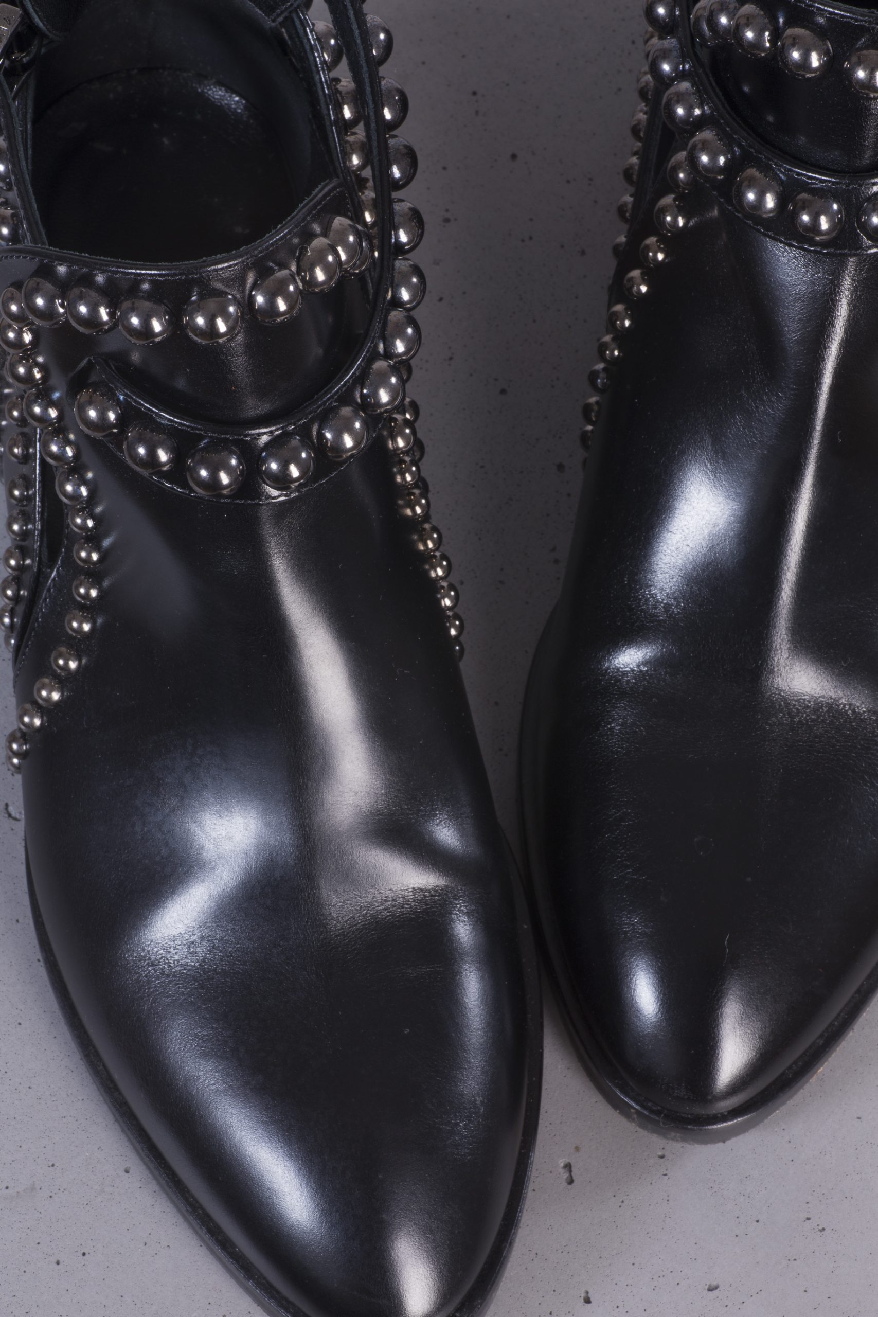 Alaïa's embellished boots have been a house signature since the Fall '92 show when models first walked them down the runway. A modern update on archival styles, this pair has been made in Italy from smooth glossy leather traced with tactile silver eyelets. They have cutouts at the ankle and shaft and a round almond toe. Slip them on with bare feet or a statement socks.