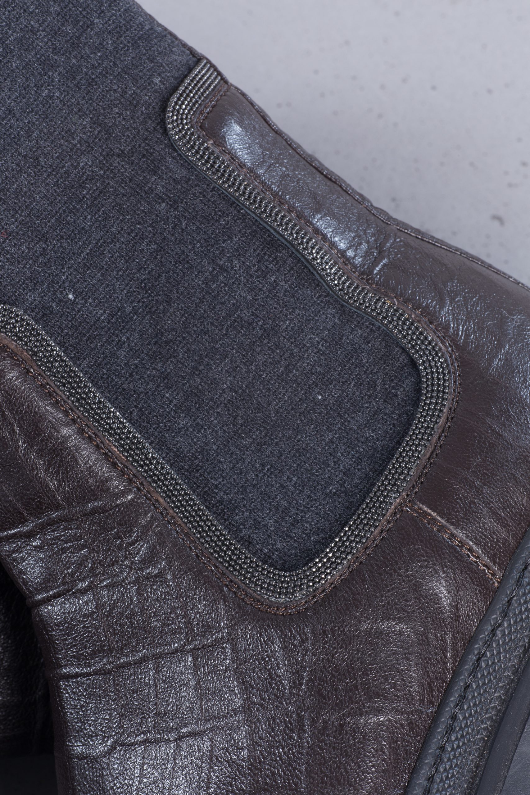 A distinctly winter style and elegant details come together in these croc-effect Chelsea boots by Brunello Cucinelli. Illuminated by a dense and precious monili embroidery, the contrasting cashmere elastic bands stand out against the croc-effect leather texture, adding a delicate sparkling touch to this footwear. The rubber outsole and bottom provide the fit with added comfort.