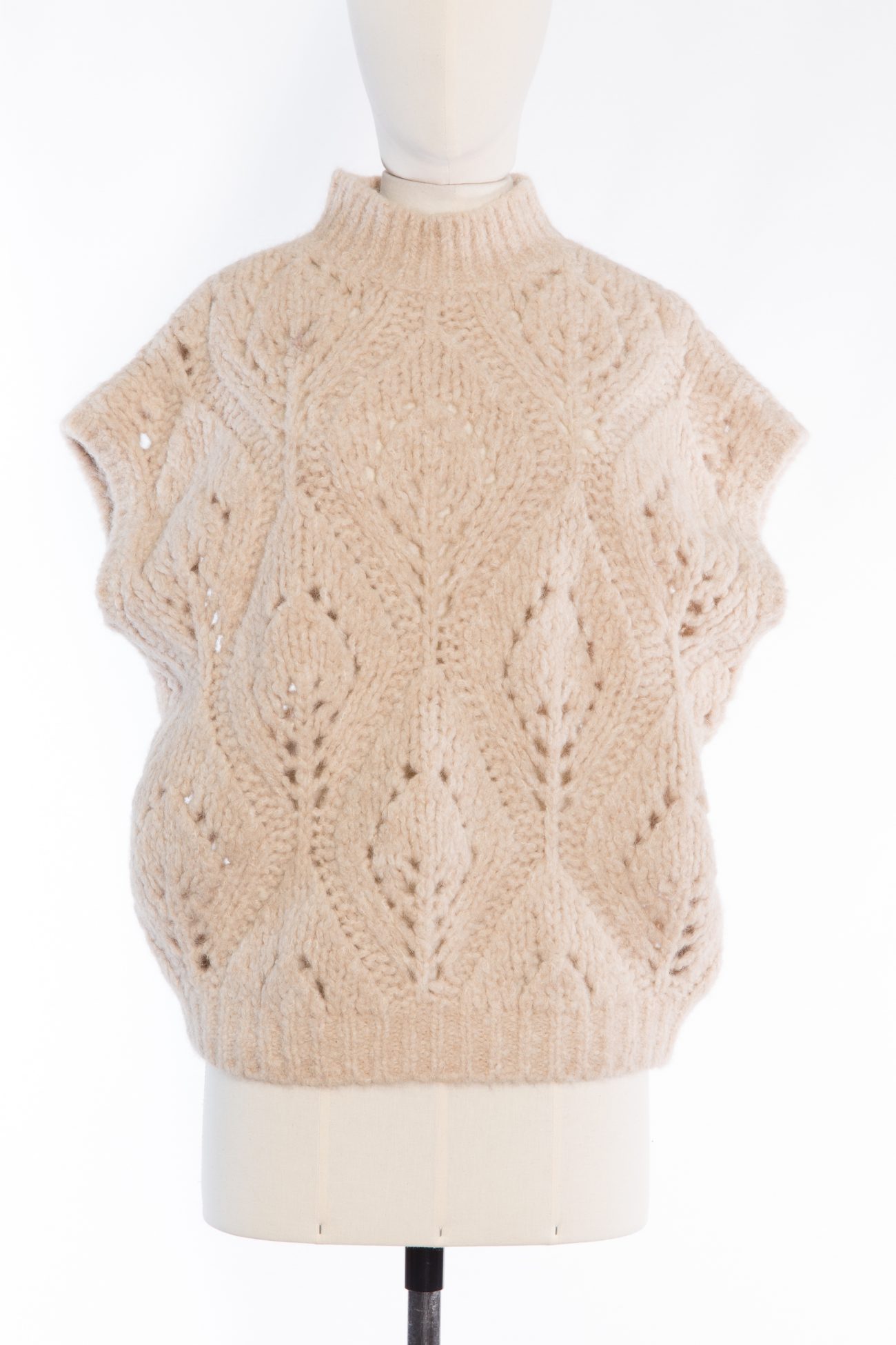 Brunello Cucinelli's basics are intended to serve as staple pieces for a lifetime. This open-knit sweater/vest is embellished with flower patterns. It's spun with generous amounts of alpaca for a fluffy and soft handle. It's designed in a relaxed silhouette with dropped shoulders and stand collar.