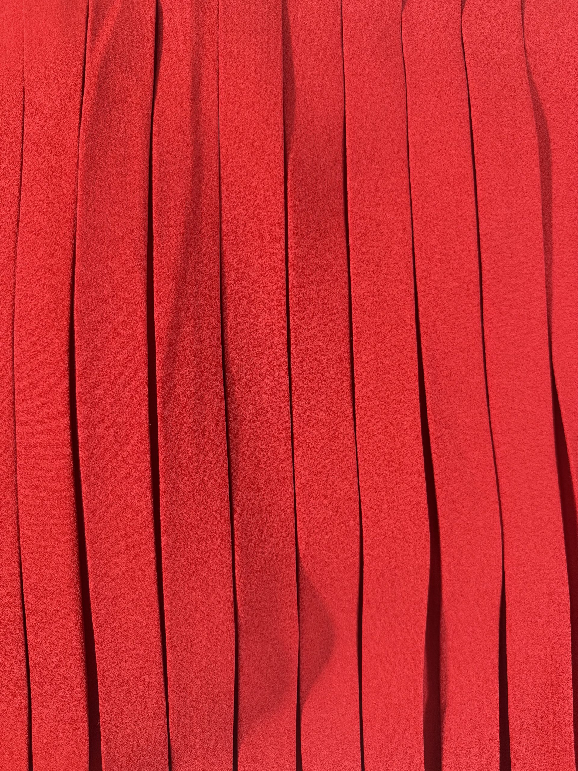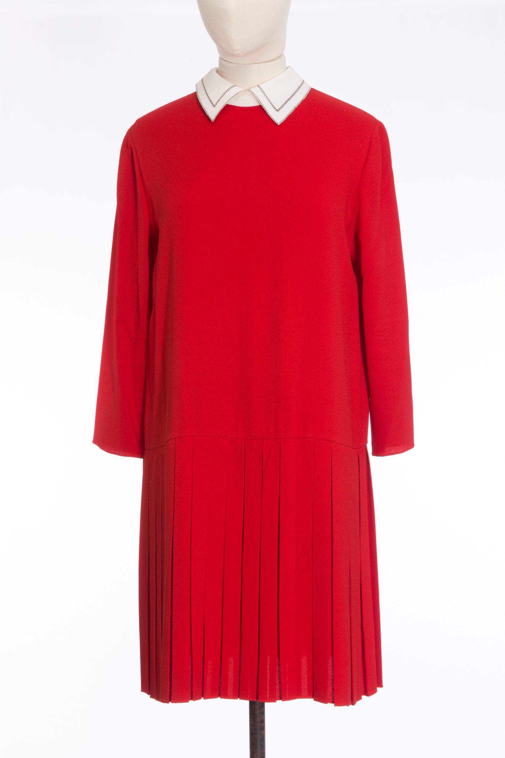 A captivating mini dress crafted from luxurious silk in a bold red hue. The fluid pleated skirt brings movement and playful elegance, while the crisp white collar adds a refined, timeless contrast. Designed to flatter the silhouette, this piece embodies Dior’s signature blend of sophistication and modern femininity.