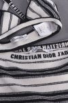 The black and white knitted striped shorts are cut in soft stretch cotton blend. Cut with a high waist silhouette, the shorts are fitted close to the body. Finely woven, they feature a band and ribbed hems with the 'Christian Dior J'Adior' logo. Wear them under a sheer skirt and complete the look with a matching bra.
