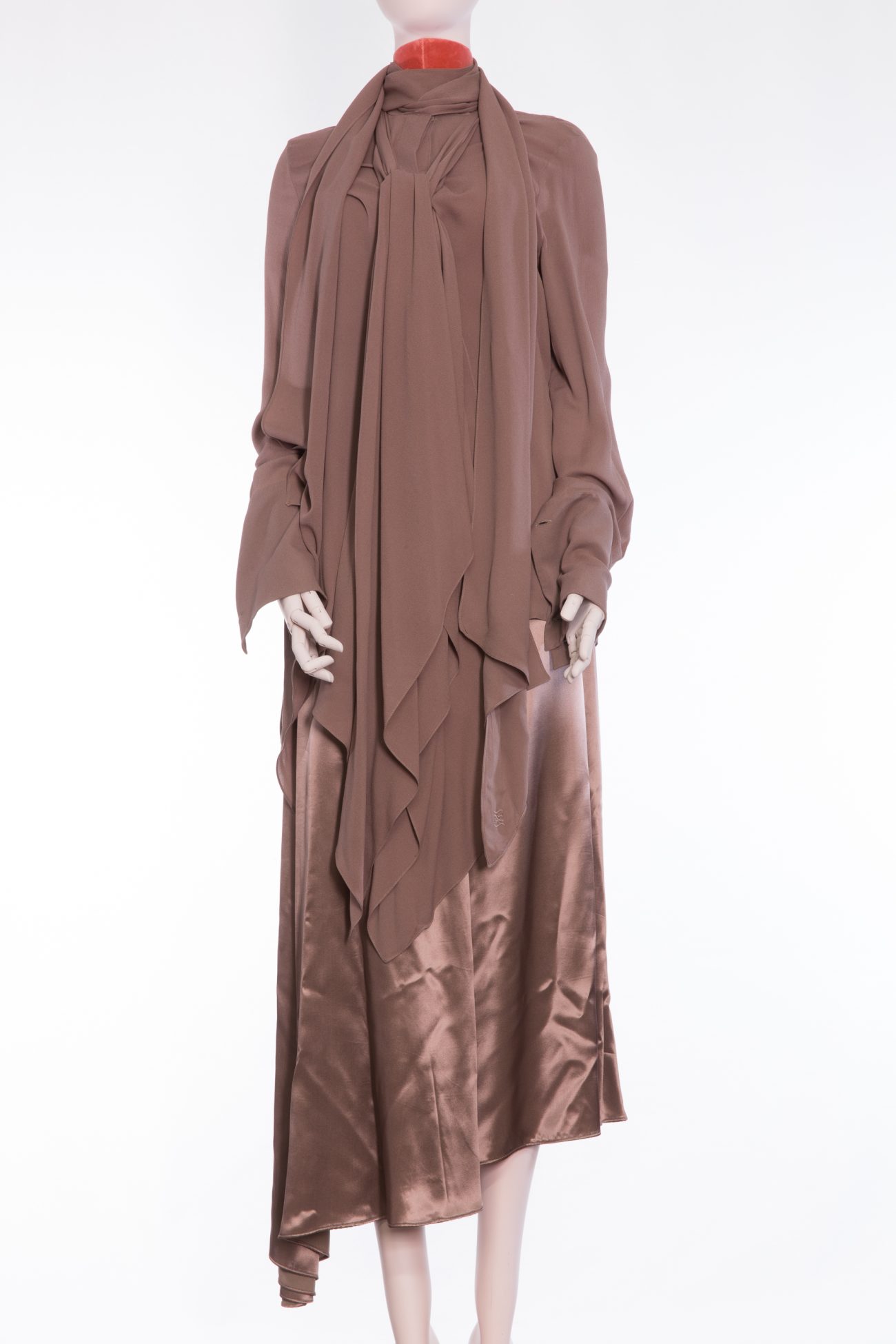 This refined silk skirt by Fendi is crafted from lightweight, flowing silk in a sophisticated cool pink hue — Creta Blush. The asymmetrical cut brings movement and modern elegance to the silhouette, enhancing femininity with every step. The soft sheen of the fabric adds a touch of understated luxury, while the fluid lines create a graceful and contemporary look. Pair it with Fendi’s airy silk-georgette tie-neck blouse with a handkerchief hem for a perfectly coordinated ensemble. This chic combination captures the essence of Fendi’s timeless sophistication and is ideal for both refined daytime wear and elegant evening occasions.