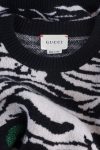 The tiger, a motif often seen in Alessandro Michele’s collections, is an expression of the House's fascination with the wild beauty of the natural world. Here, the black and white stripes defined by a intarsia knit tiger design. The style continues to play with contrasting glittering metallic threading. It features a round neck, long sleeves and ribbed trimming.