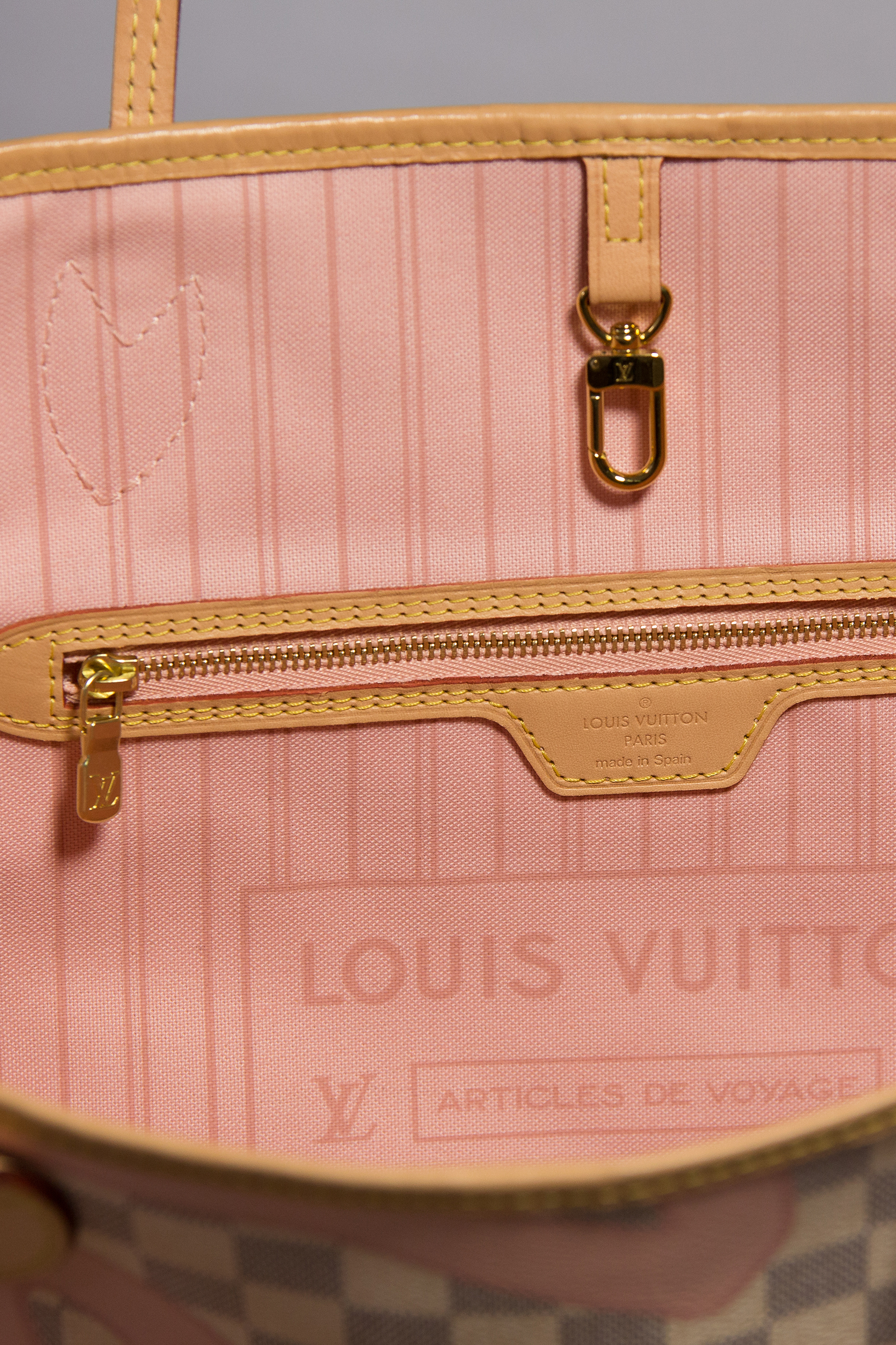 Effortlessly practical, the Neverfull MM is an ideal tote whose laces can be tightened to create a more compact, chic city bag. To celebrate the summer of 2017, Louis Vuitton shines the spotlight on the House’s fundamental heritage by featuring limited edition Les Tahitiennes Damier Azur. For the first time, the iconic Damier Azur canvas is decorated with a fresh, feminine print of Rose Ballerine Monogram flowers.